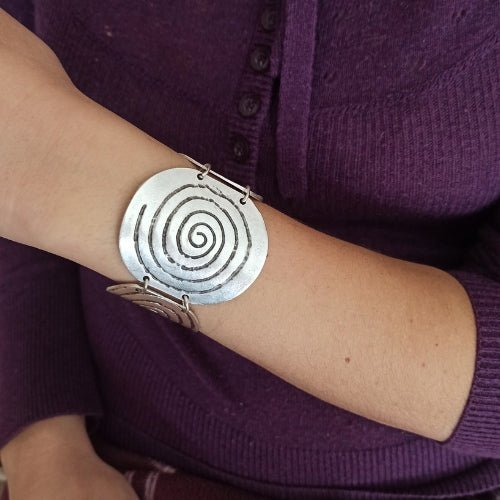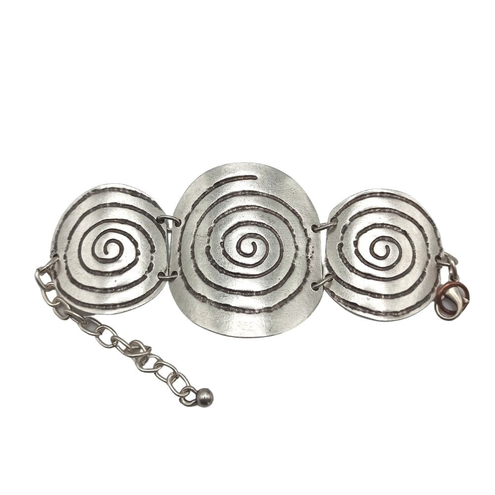 Το χειροποίητο βραχιόλι επαργυρωμένο με γεωμετρικά μοτίβα είναι ένα πολύ όμορφο και μοναδικό κόσμημα. Το επαργυρωμένο ζάμακ είναι ένα υλικό που μοιάζει πολύ με το ασήμι, αλλά είναι πιο ανθεκτικό στη φθορά. Τα γεωμετρικά του μοτίβο δημιουργούν ένα ενδιαφέρον σχέδιο. Επίσης, το ρυθμιζόμενο μέγεθος το κάνει ιδανικό για διάφορα μεγέθη καρπού.